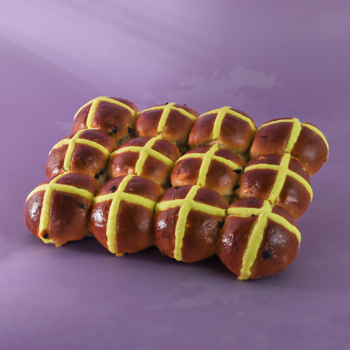 Sumptuous and indulgent, this bun features a delectable chocolate batter infused with aromatic warmed spices, zesty orange peel and chocolate chip.