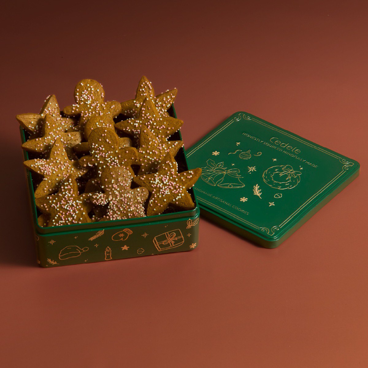 Delicately crafted gingerbread men and stars, with a crisp texture and warm blend of ginger, cinnamon, and nutmeg. Made with unrefined sugar, a wholesome Christmas treat – perfect for gifting.